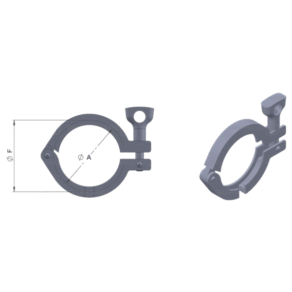 Thermocouple-fähige Smart™-Klammer mit einem Eingang für Rubberfab-Zubehör; robuste, gelenkige Heavy-Duty-Bauart aus AISI 316, Einhandmontage. Maßhaltig gemäß ASME-BPE, BS 4825, DIN 32676 und ISO 1127. Eindeutige Nummer zur Rückverfolgbarkeit; 3.1-Materialzertifikat nach DIN EN 10204 inklusive.
